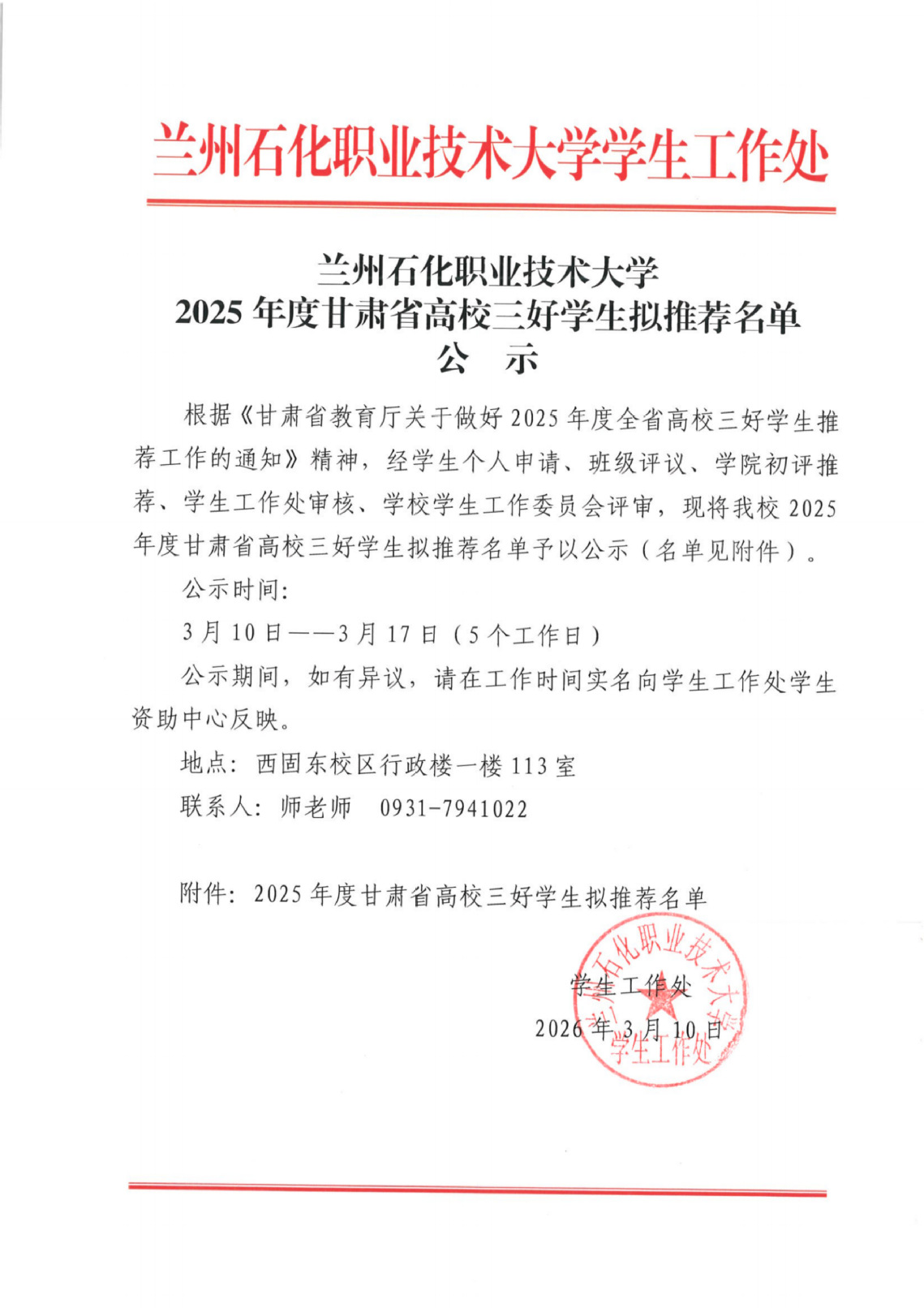2026年1月26日14时56分,我省甘南州迭部县发生5.5级地震,震源深度10公里。地震发生后,学校高度关切此次地震给灾区学生家庭带来的影响。为及时开展受灾学生的关爱和帮扶工作,学校决定立即启动“地震灾害临时困难专项补助”通道,切实帮助因地震灾害导致家庭经济出现临时困难的学生渡过难关。现将有关事项通知如下:一、资助对象我校全日制在读学生(含本专科、中职),家庭所在地遭受此次地震灾害,造成重大经济损失,导致家庭经济出现临时困难的学生。二、申报时间与流程 1.个人申请。受灾家庭学生本人如实向所在学院班主任、资助辅导员的上报受灾情况及相关佐证材料,主动提交临时困难补助申请, 2.学院初审。各学院通
